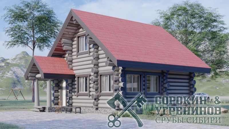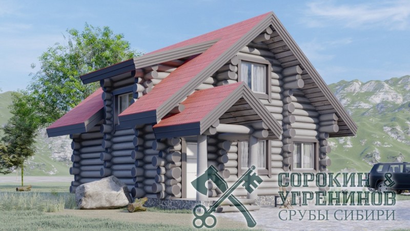 Проект дом-баня из бревна средним диаметром 260мм, размер сруба дома 7,8х9м, общая площадь дома 103м2, объём бревна в срубе 70м3. Дом-баня строился по индивидуальному проекту. Установка сруба производилась в Новосибирске в 2013 году в деревне Бугры.
